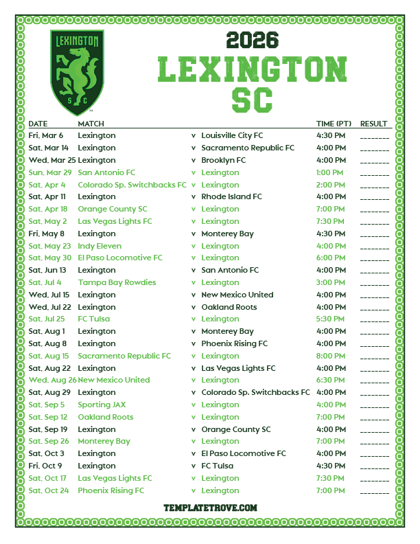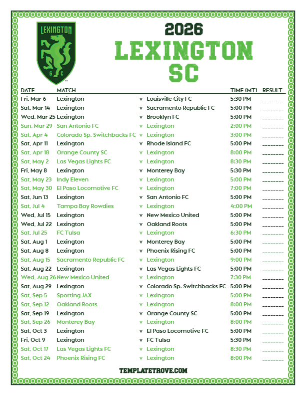 Keep up with the Lexington soccer team in the 2026 season with our free printable regular season schedules.