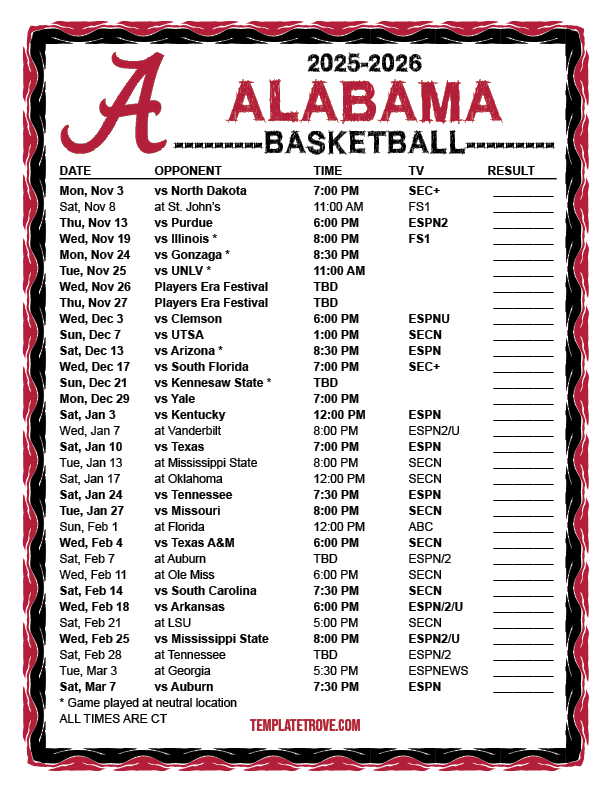 Keep up with the Alabama Crimson Tide basketball in the 2025-26 season with our