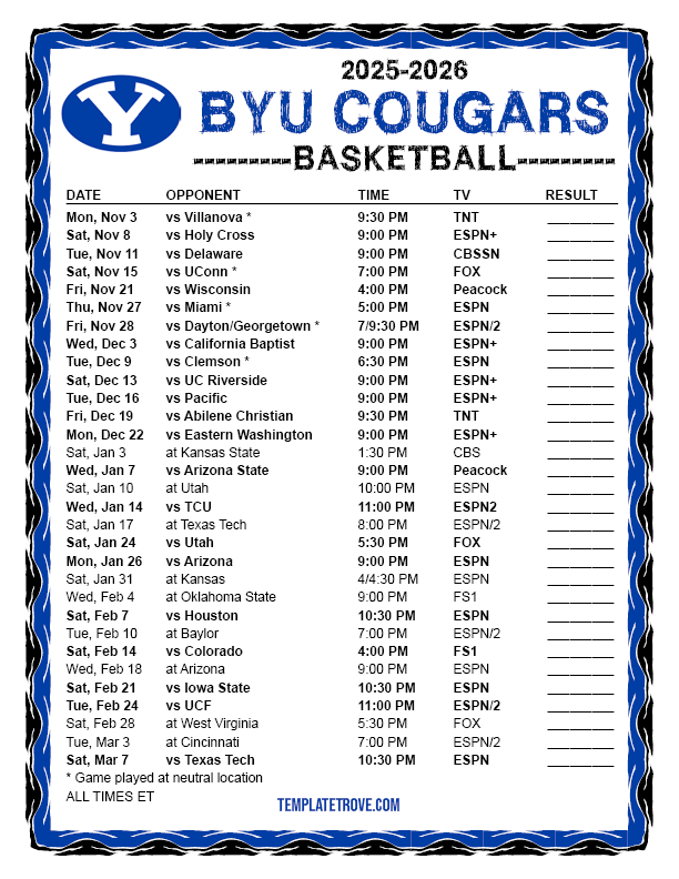 Keep up with the BYU Cougars basketball in the 2025-26 season with our