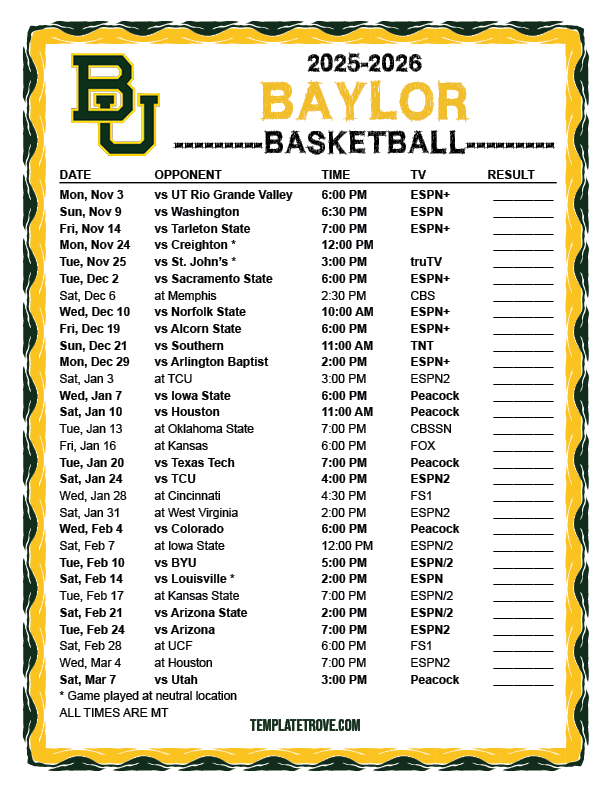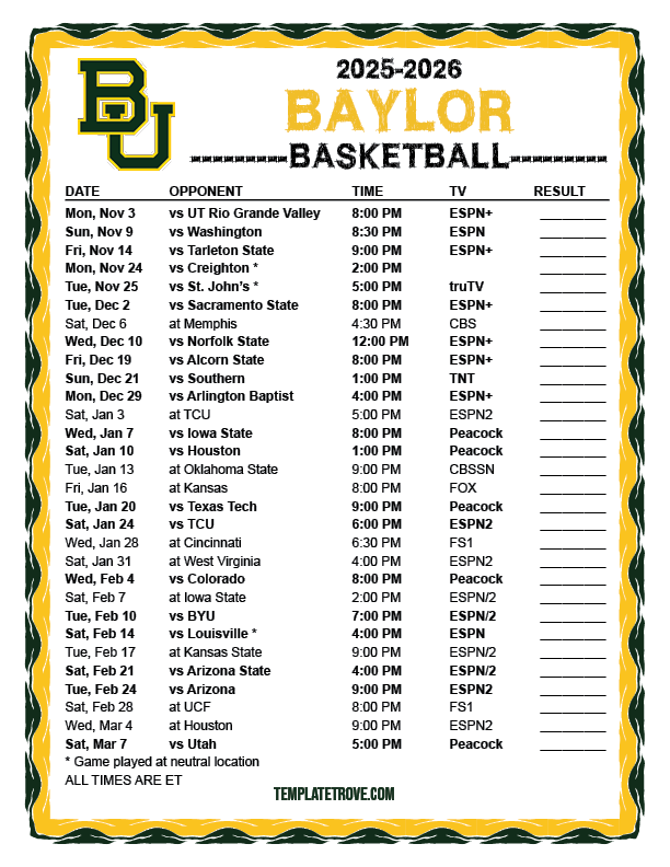 Keep up with the Baylor Bears basketball in the 2025-26 season with our