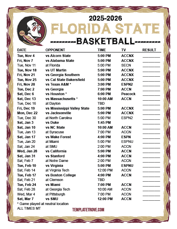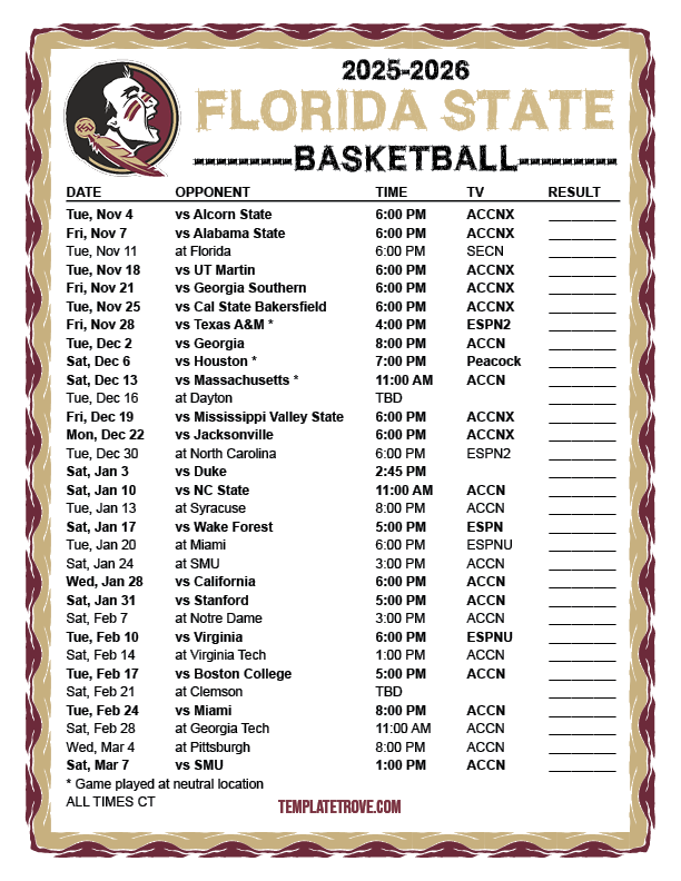 Keep up with the Florida State Seminoles basketball in the 2025-26 season with our