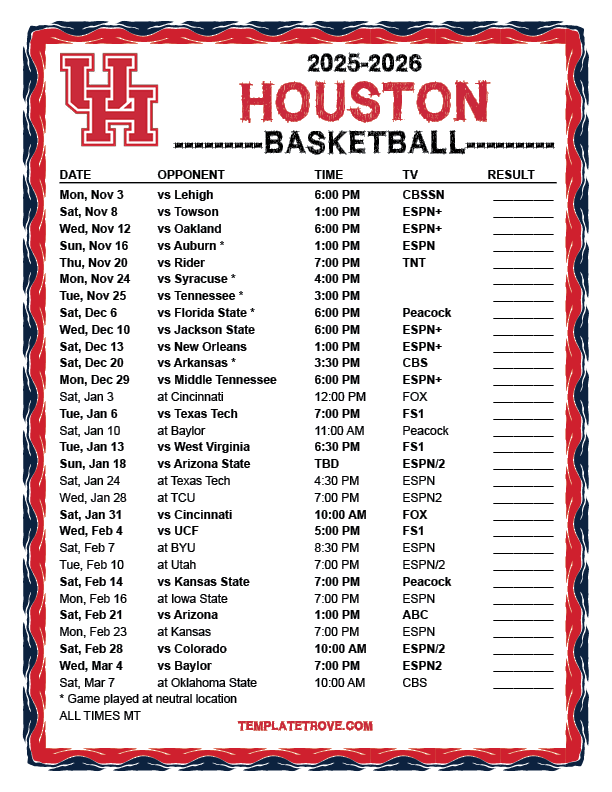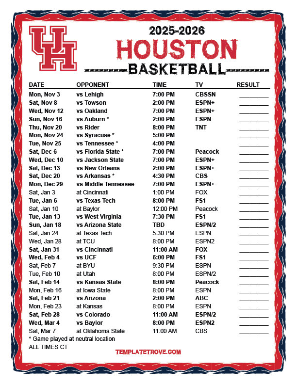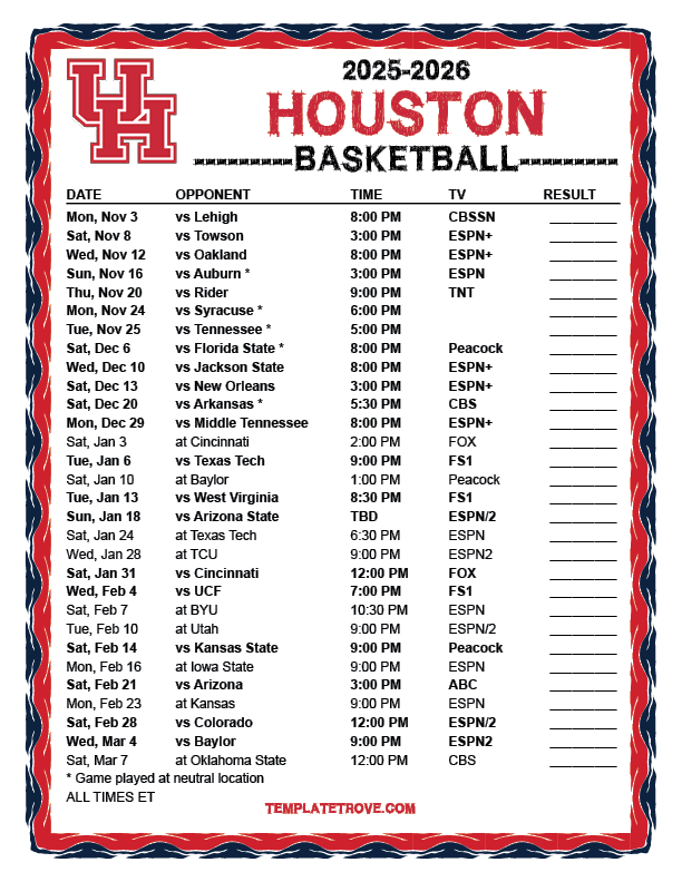 Keep up with the Houston Cougars basketball in the 2025-26 season with our