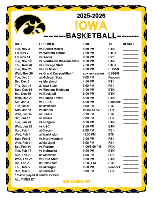 Keep up with the Iowa Hawkeyes basketball in the 2025-26 season with our