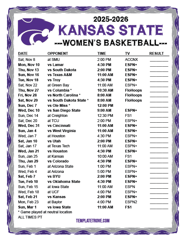 Keep up with Kansas State Wildcats Women's Basketball in the 2025-26 season with our