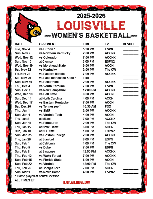 Keep up with Louisville Cardinals women's basketball in the 2025-26 season with our