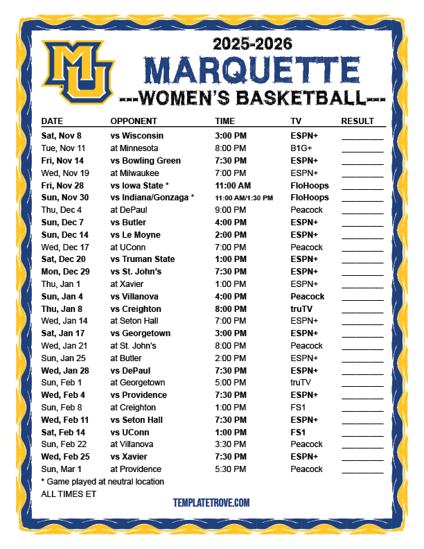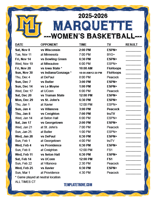 Keep up with Marquette Golden Eagles Women's Basketball in the 2025-26 season with our