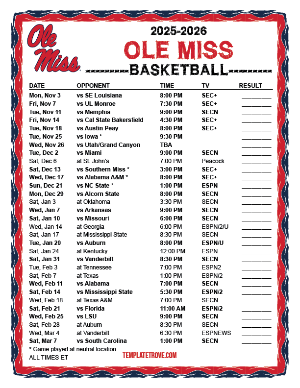 Keep up with the Ole Miss Rebels basketball in the 2025-26 season with our