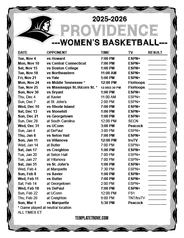 Keep up with Providence Friars Women's Basketball in the 2025-26 season with our