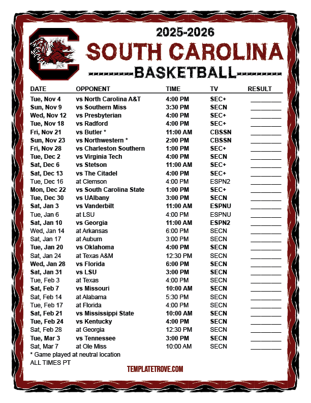 If you get a chance, please share the schedules through social media with your fellow Gamecock Fans. It's easy, and it would help us out a bunch, just click one of the social share buttons at the right of the screen on desktop or the black share button at the bottom right on mobile phones.