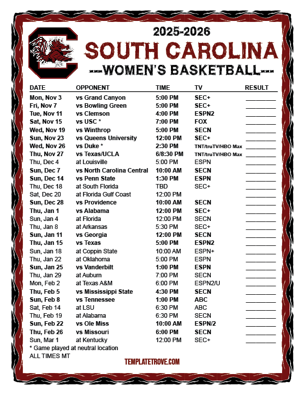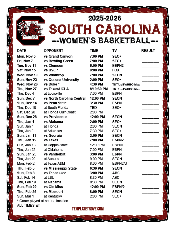 Keep up with South Carolina Gamecocks women's basketball in the 2025-26 season with our