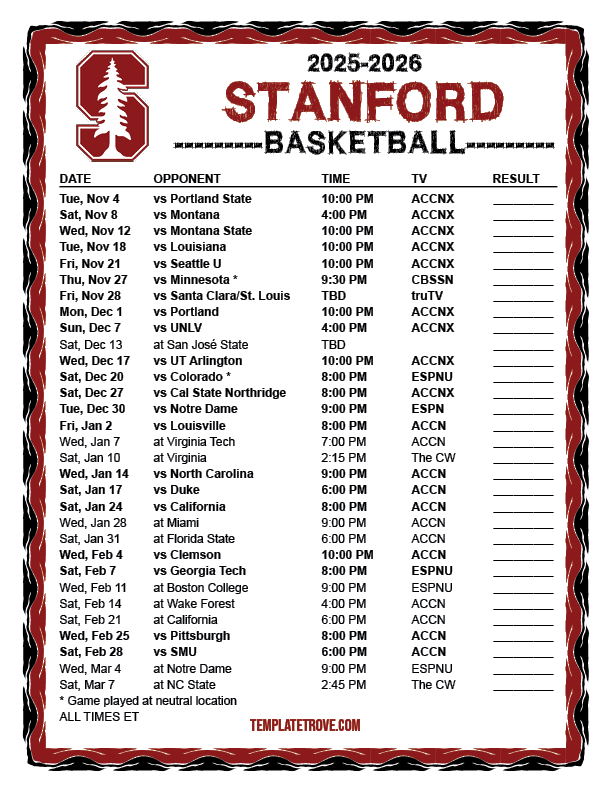 Keep up with the Stanford Cardinal basketball in the 2025-26 season with our