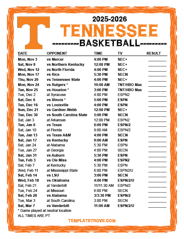 Keep up with the Tennessee Volunteers basketball in the 2025-26 season with our
