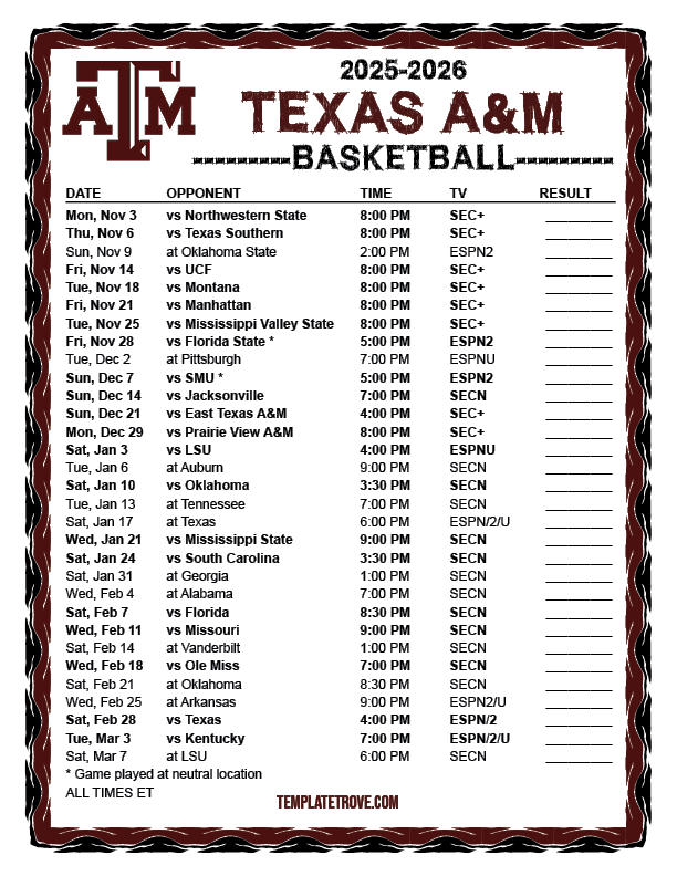 Keep up with the Texas A&M Aggies basketball in the 2025-26 season with our