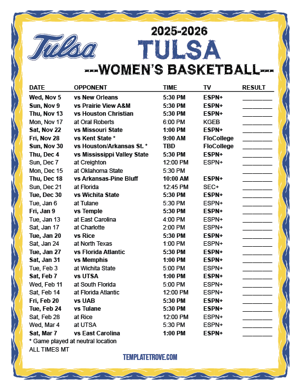 Keep up with Tulsa Golden Hurricane women's basketball in the 2025-26 season with our