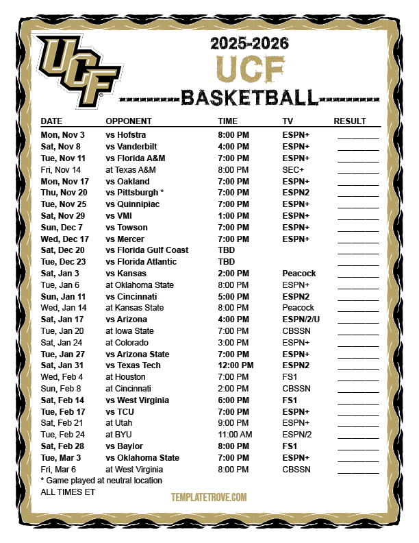 Keep up with the UCF Knights basketball in the 2025-26 season with our