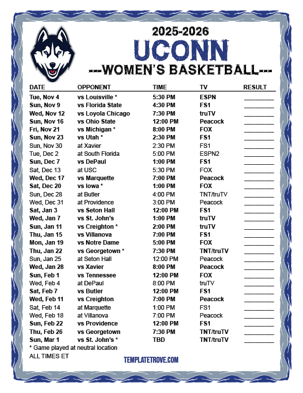 Keep up with UConn Huskies Women's Basketball in the 2025-26 season with our
