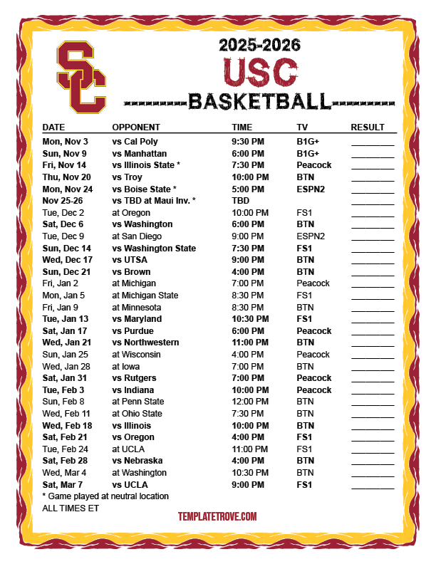 Keep up with the USC Trojans basketball in the 2025-26 season with our