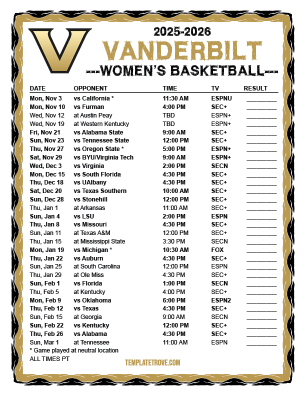 Keep up with Vanderbilt Commodores women's basketball in the 2025-26 season with our