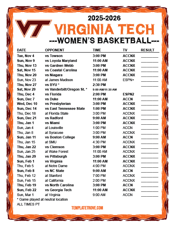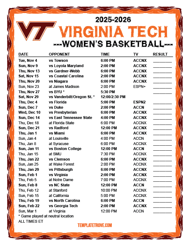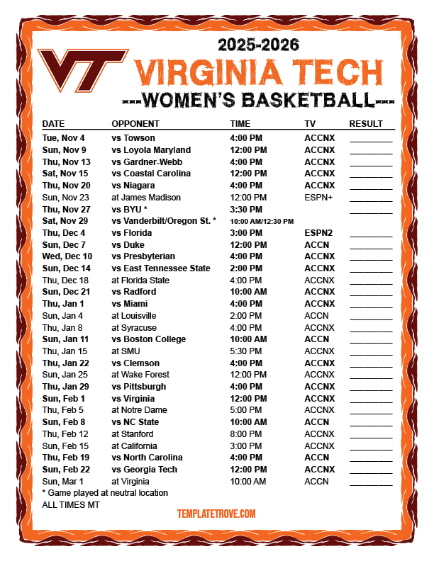 Keep up with Virginia Tech Hokies women's basketball in the 2025-26 season with our