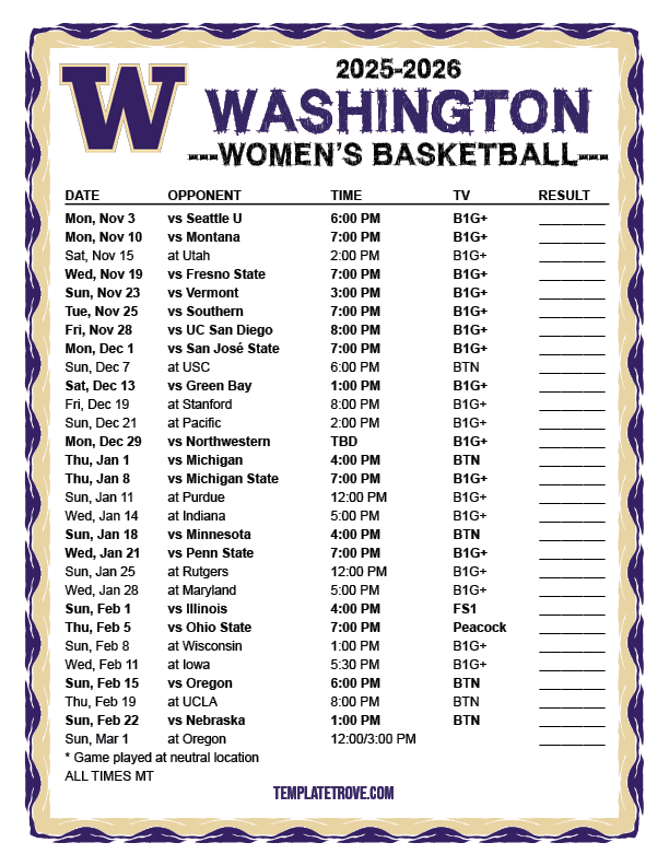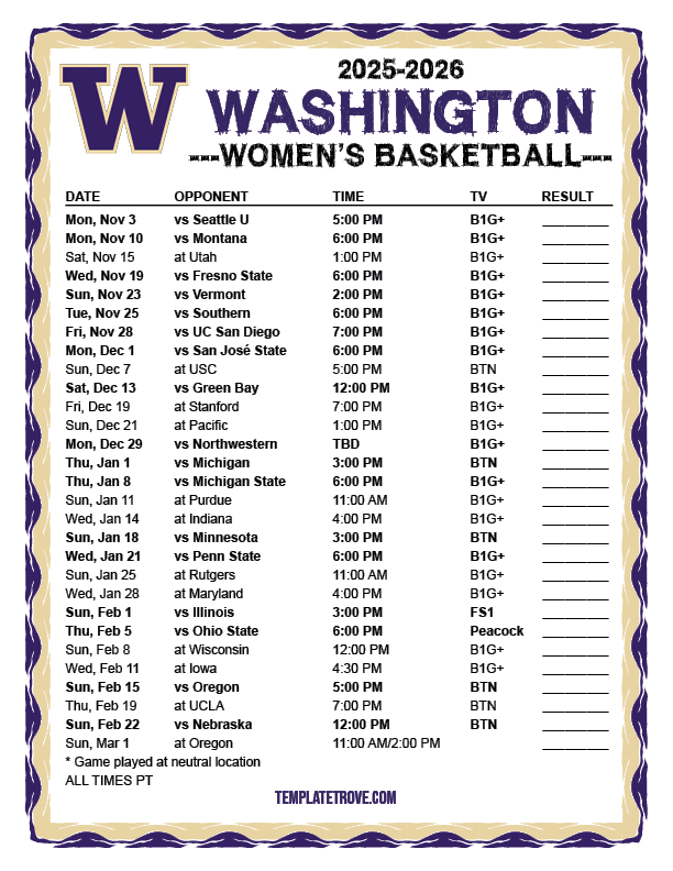 Keep up with Washington Huskies women's basketball in the 2025-26 season with our