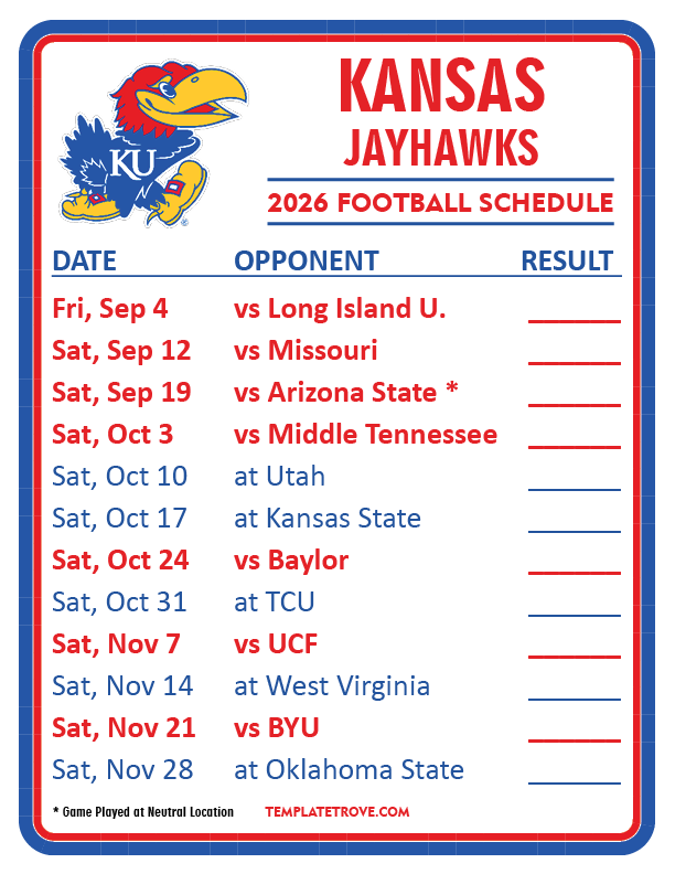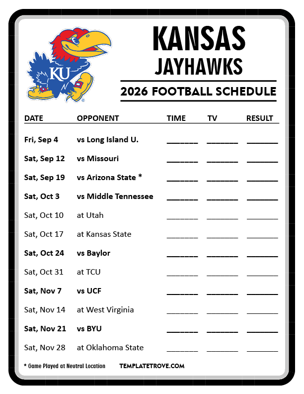 If you get a chance, please share the schedules through social media with your fellow Jayhawk Fans. It's easy, and it would help us out a bunch, just click one of the social share buttons at the right of the screen on desktop or the black share button at the bottom right on mobile phones.