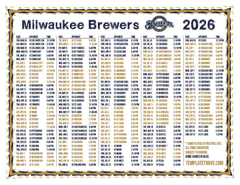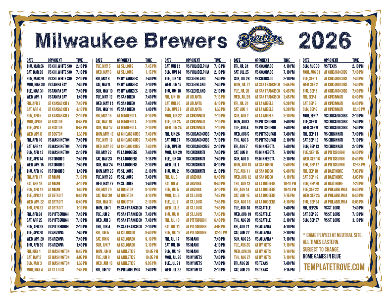 Keep up with the 2026 Milwaukee Brewers with our handy printable schedules, now available for each US time zone.