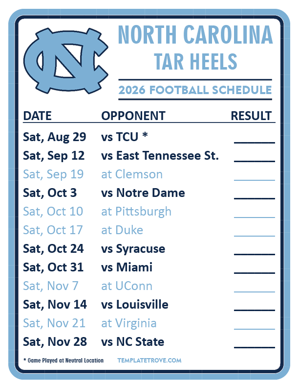 Keep up with North Carolina Tar Heels Football in the 2026