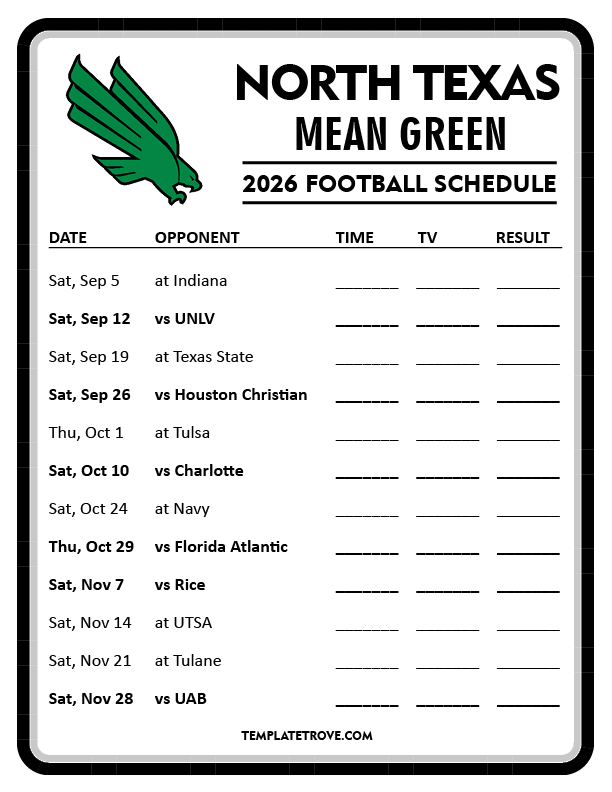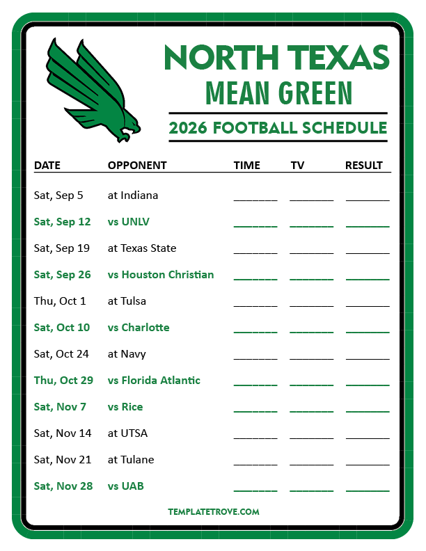 If you get a chance, please share the schedules through social media with your fellow Mean Green Fans. It's easy, and it would help us out a bunch, just click one of the social share buttons at the right of the screen on desktop or the black share button at the bottom right on mobile phones.