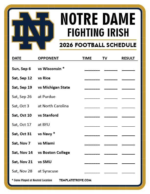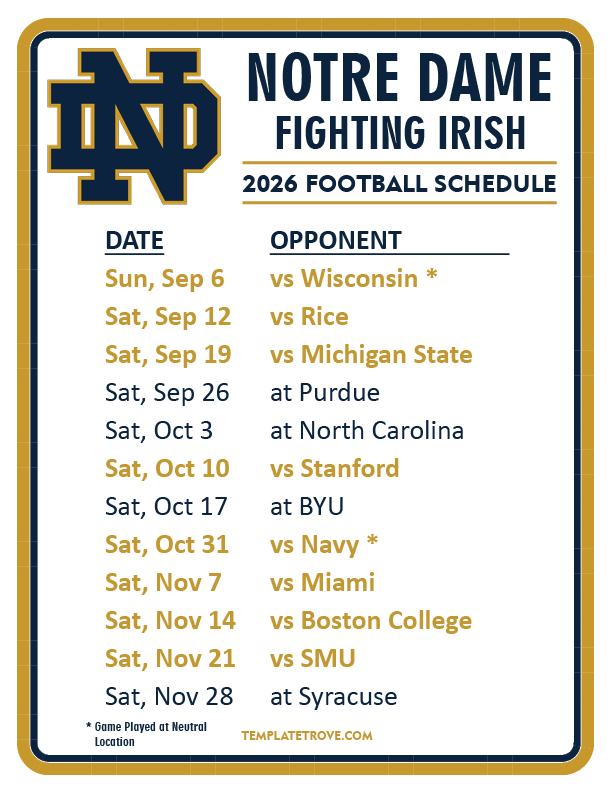 Keep up with Notre Dame Fighting Irish Football in the 2026