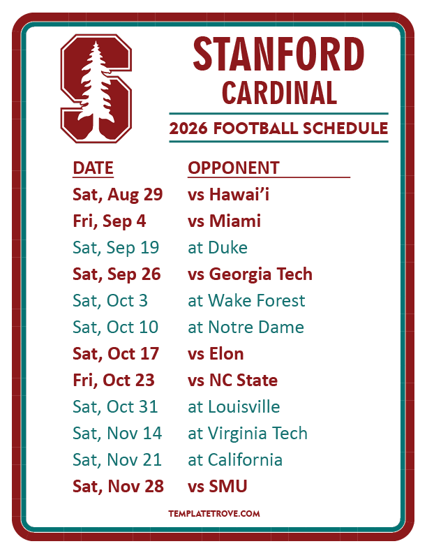 Keep up with Stanford Cardinal Football in the 2026