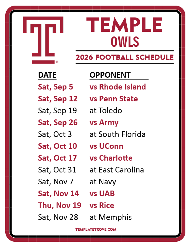 Keep up with Temple Owls Football in the 2026
