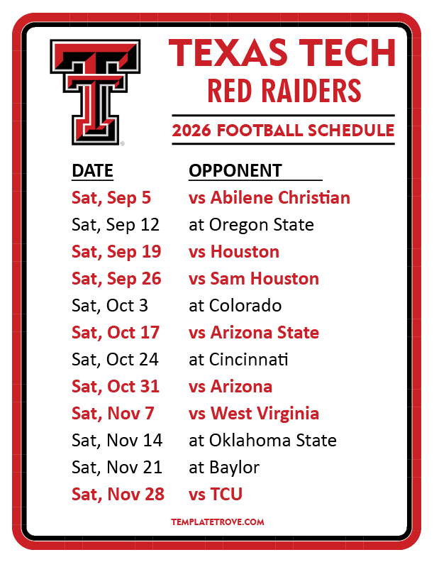 Keep up with Texas Tech Red Raiders Football in the 2026